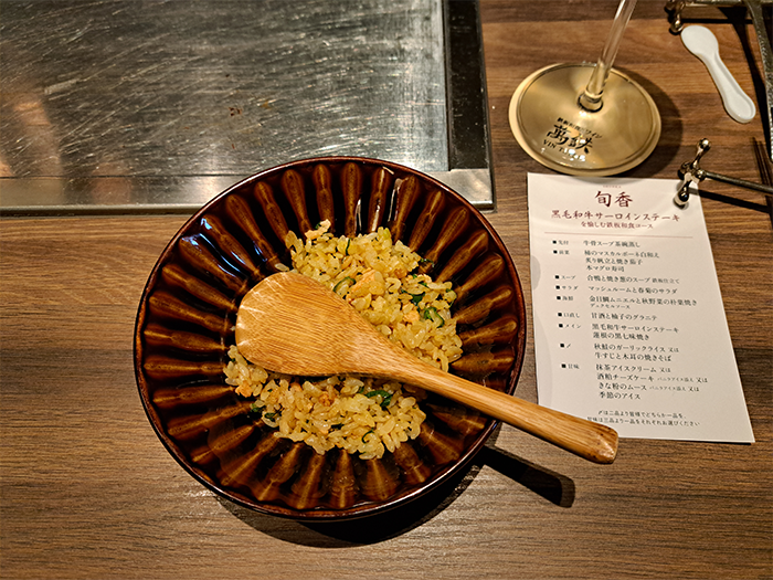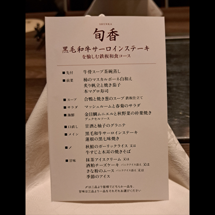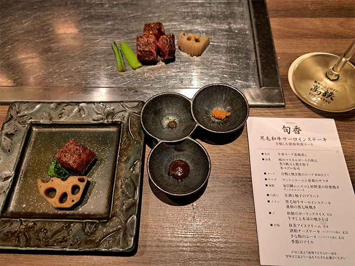黒毛和牛サーロインステーキを楽しむ鉄板和食コース(8,500円)を予約しました。