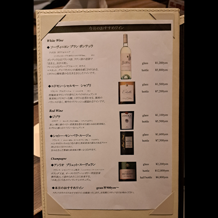 メニュー表 今日のおすすめワイン より
