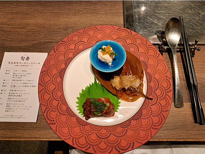 コース内容のお料理は、洋を取り入れながらも、秋を感じさせる和風の料理で、よく考えられていました。どれも大変美味しく、特別な結婚記念日となりました。
