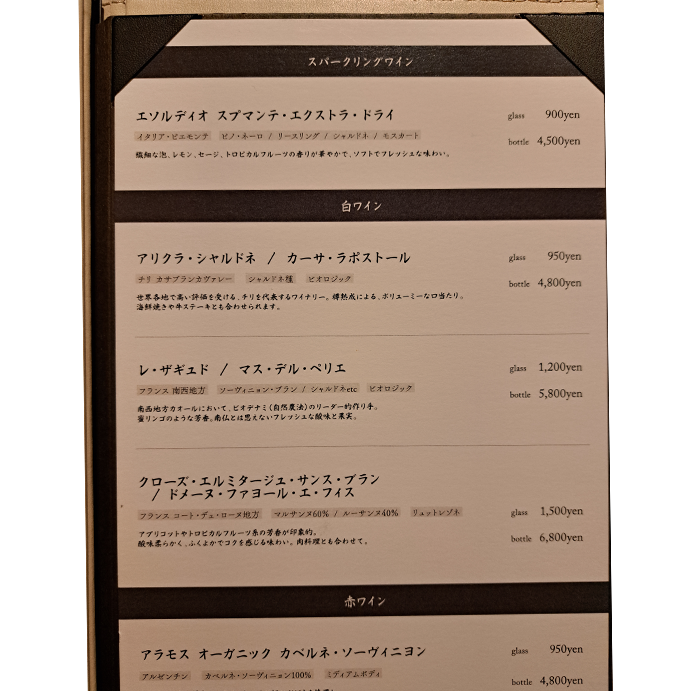 ワインについての情報を、メニュー表から引用させてもらいます。