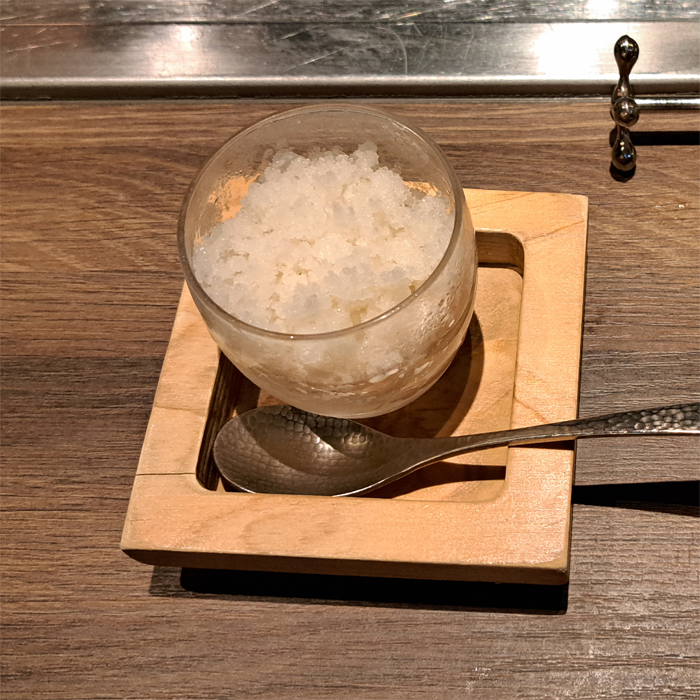 口直しは、甘酒と酢橘のグラニテです。
